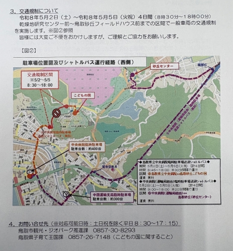 (鳥取砂丘こどもの国手前)までの区間で一般車両の交通規制が実施